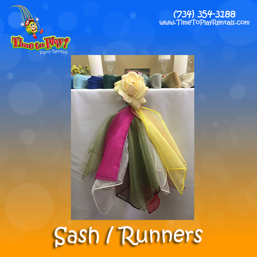 Our sashes and runners are the perfect finishing touch for your tables and chairs!